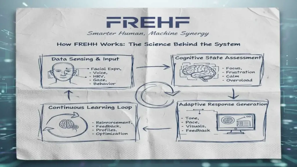 FREHF is an integrative framework designed to foster collaboration between humans and machines through a deep understanding of human psychology, emotion, and intent. Unlike conventional AI systems that rely purely on logic and data, it leverages adaptive intelligence to interpret subtle human cues, such as tone, facial expressions, attention levels, and cognitive load.